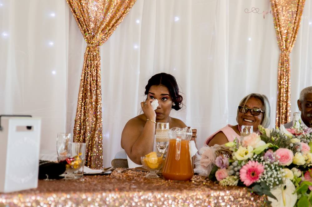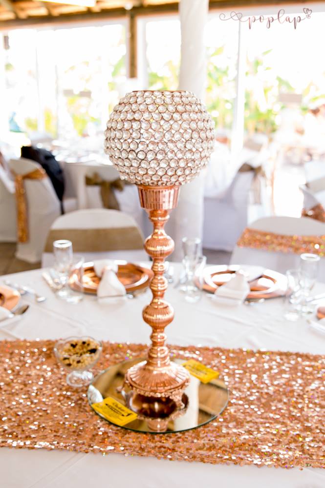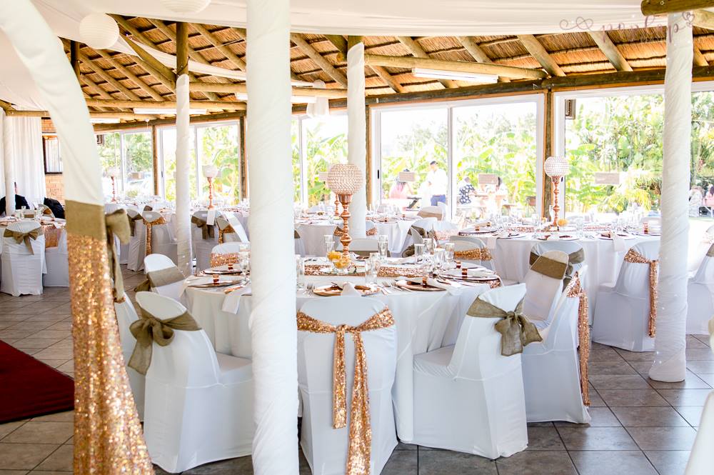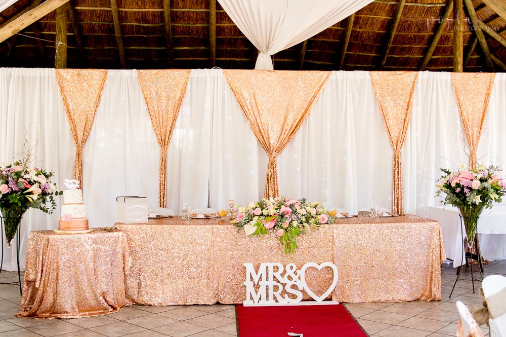 Décor by Decksters Catering brought in gold glitter elements combined with white accents, adding a touch of elegance and sparkle to the setting.