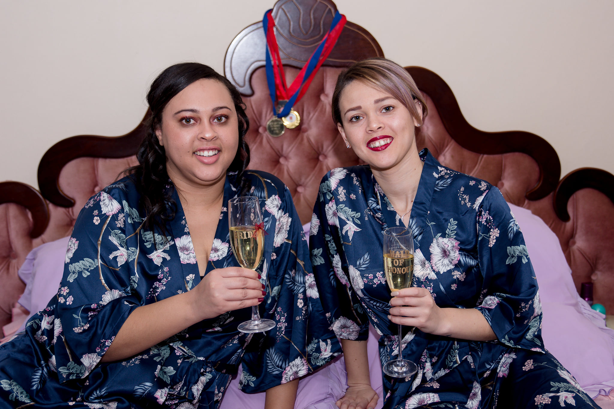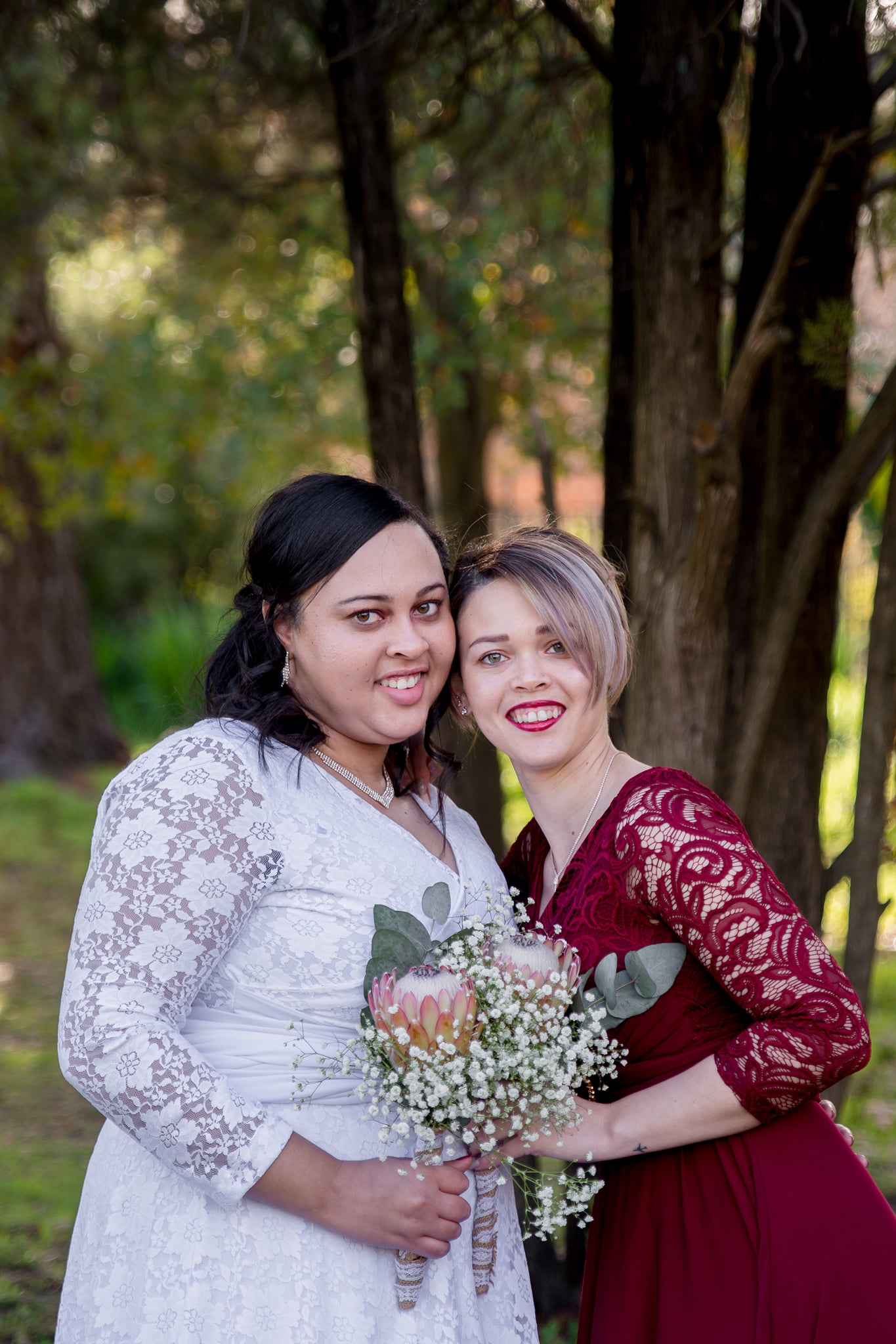 Giselle looked radiant in her gown from Infinity Dress Boutique, soft, flowing, and beautifully suited to the intimate nature of the day. Her bridesmaid also wore a design from Infinity Dress Boutique, creating a harmonious and elegant bridal look.