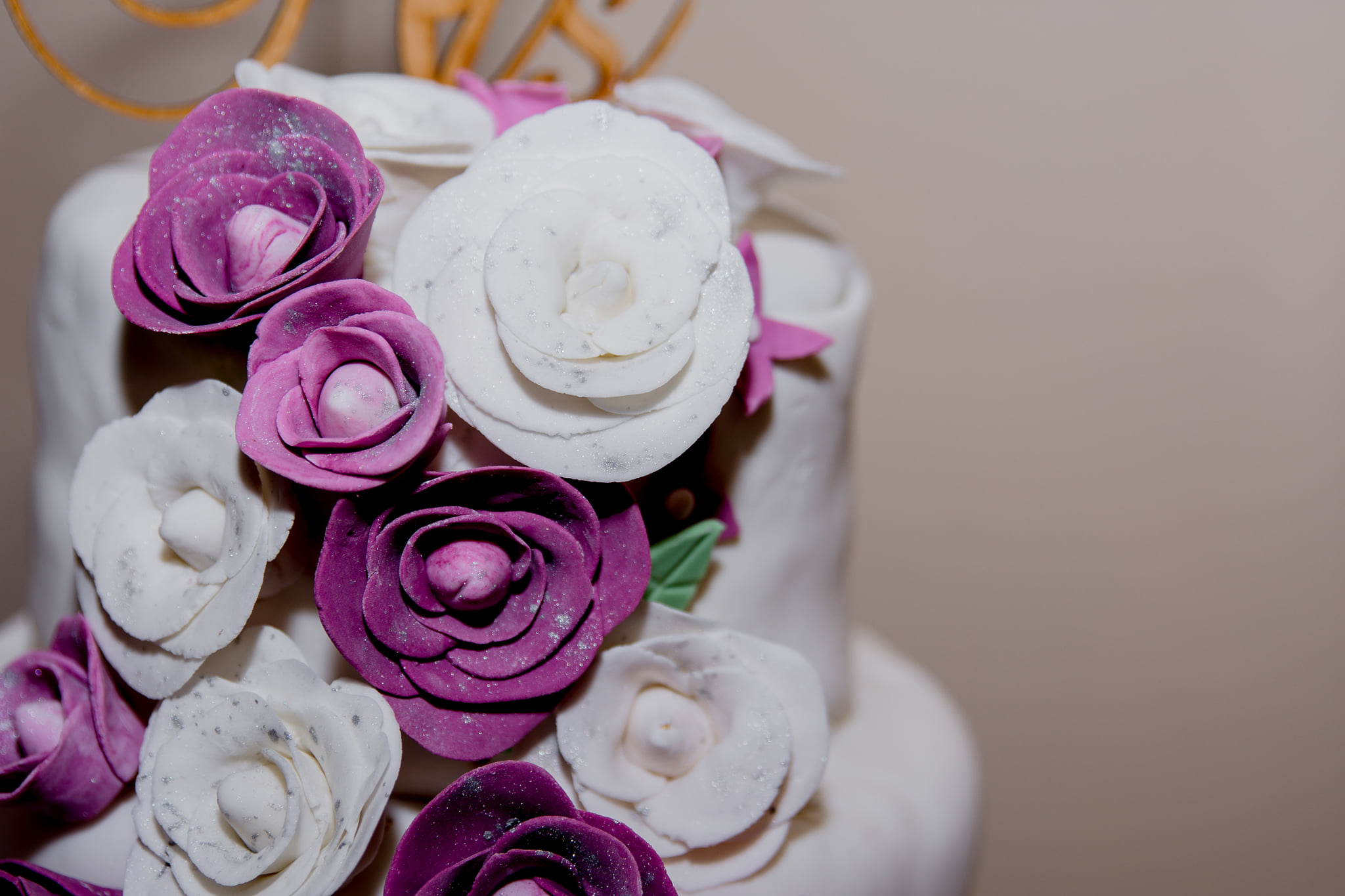 The cake and décor by Miche Sauls added a refined finishing touch, complemented by beautiful floral arrangements from Oak Valley Estates.